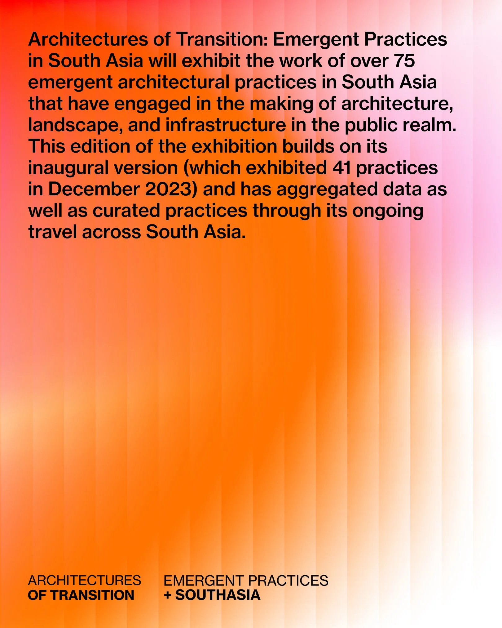 This project takes forward The State of Architecture: Practices and Processes in India exhibition, curated by Kaiwan Mehta, Ranjit Hoskote and Rahul Mehrotra, which was held at NGMA Mumbai in 2016. In the past ten years, the Architecture Foundation has continued to pursue questions in practice across changing contexts, both within India and across the subcontinent, through projects like State of Housing: Aspirations, Imaginaries and Realities in India in 2018 — a research-oriented exhibition that focused on the complexity of the housing question in India.